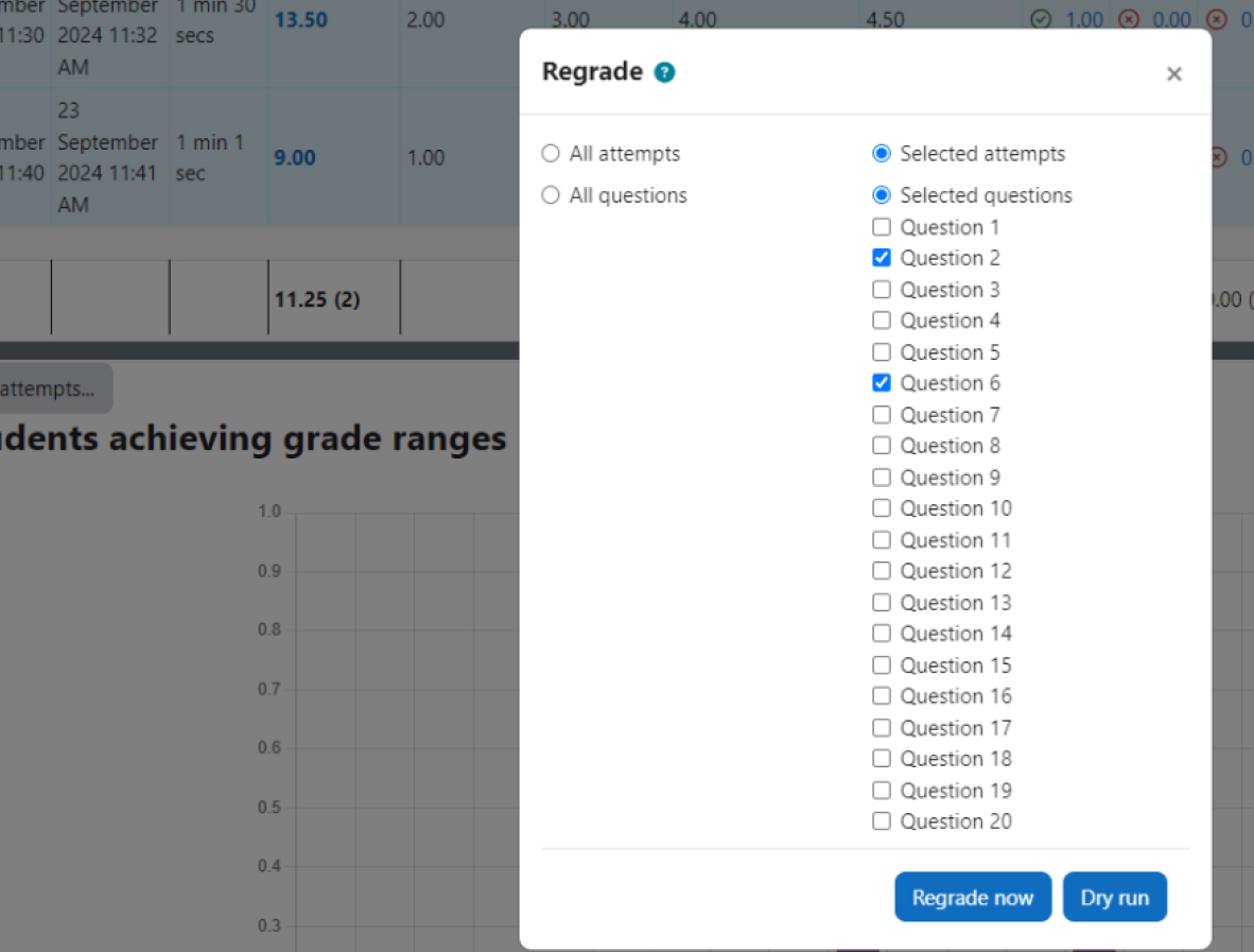 • Ausgewählte Fragen in einem Quiz können neu bewertet werden.